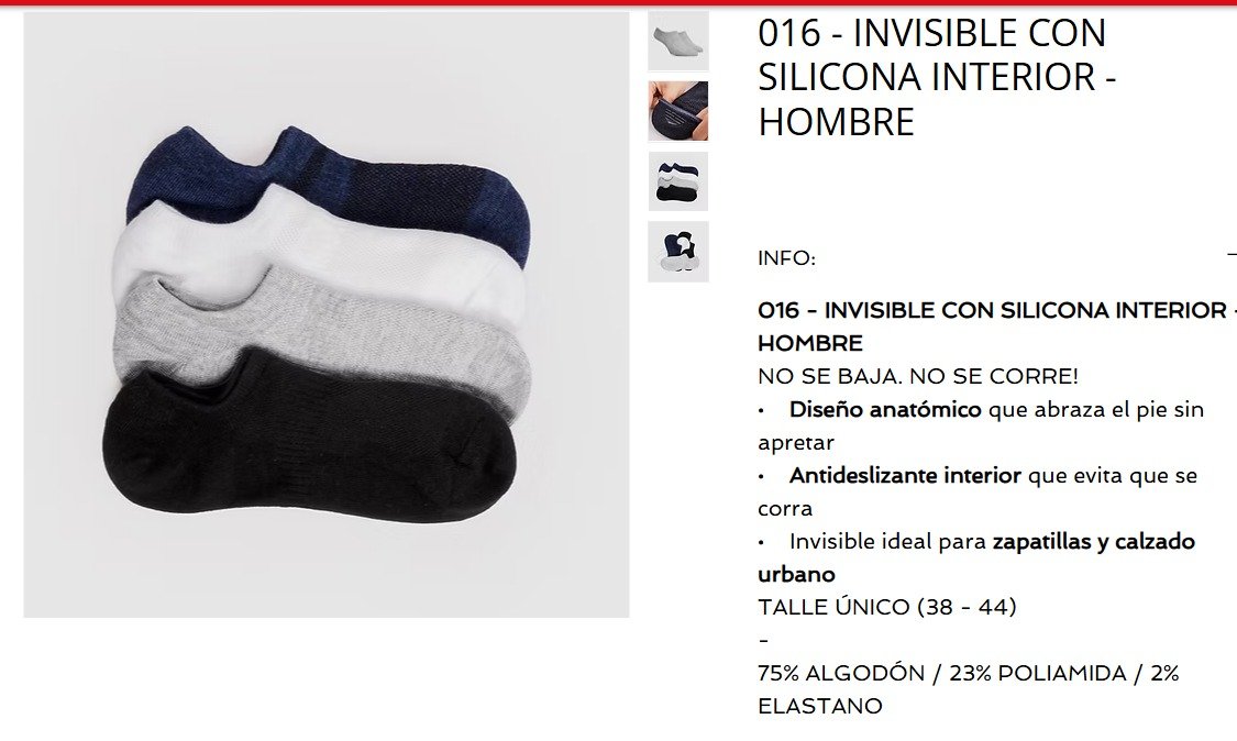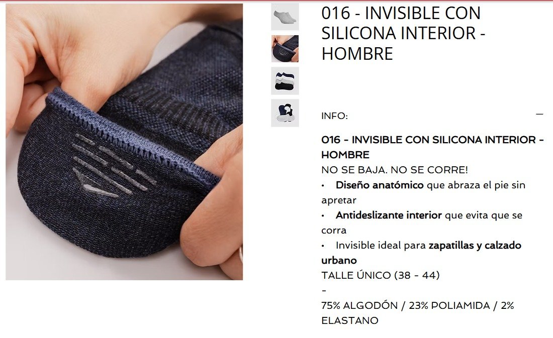 ELEMENTO INVISIBLE ANTIDESLIZANTE HOMBRE CON SILICONA LISO SURTIDO XDOC(016LSTU)