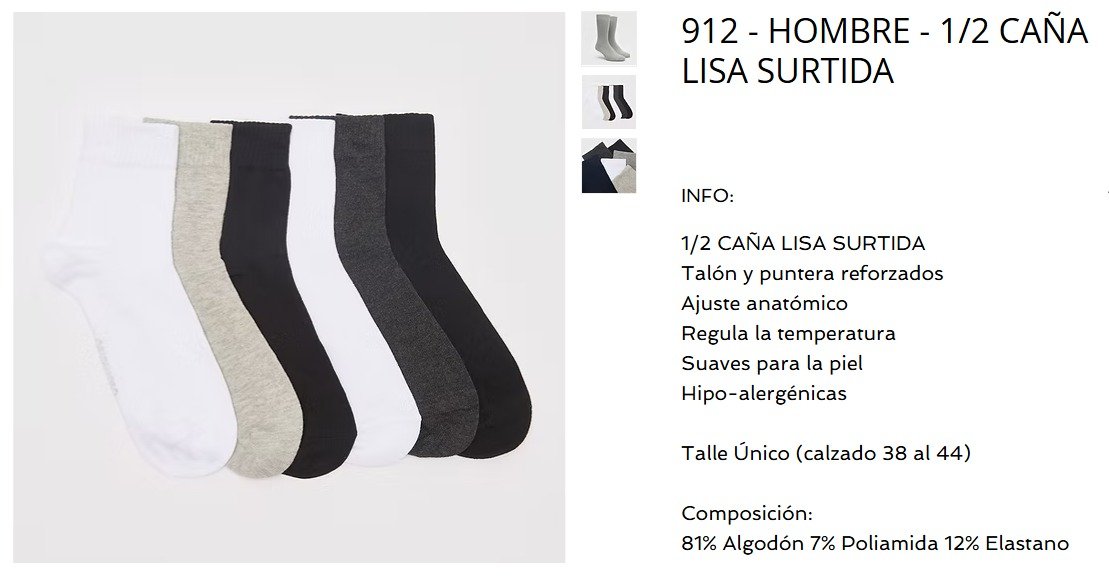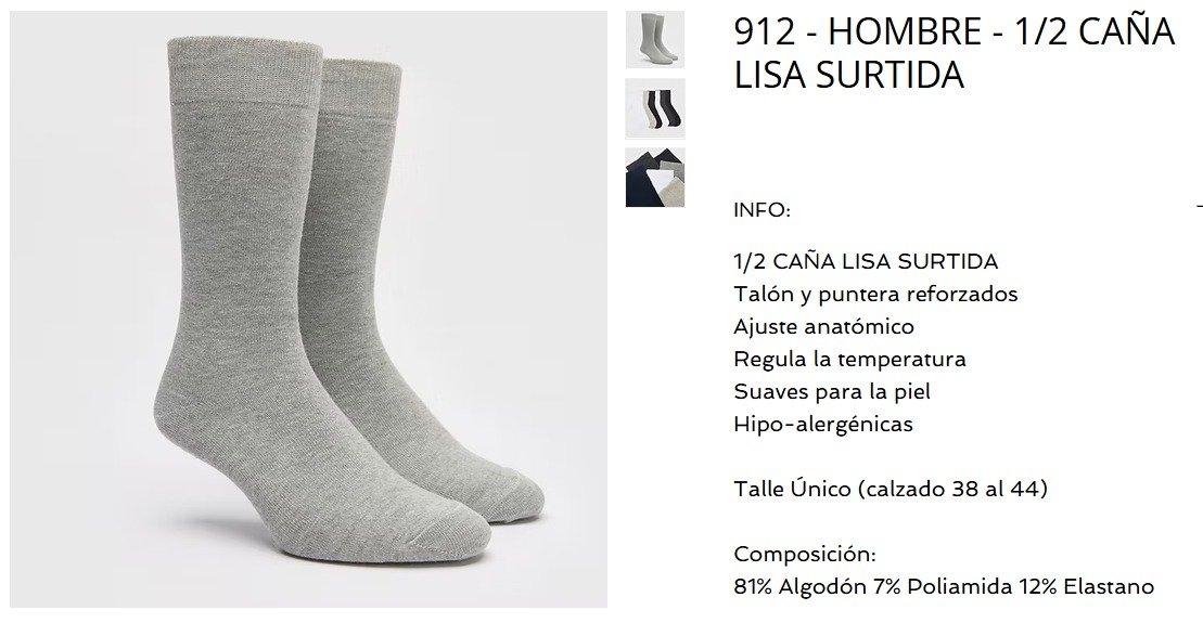ELEMENTO MEDIA CAÑA HOMBRE LISO SURTIDO XDOC(912LS)