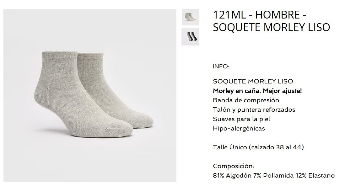 ELEMENTO SOQUETE HOMBRE MORLEY LISO XDC(121ML)