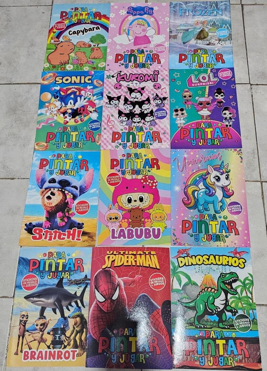 LIBRITOS PARA COLOREAR 16 PAGS Y STICKERS CON 12 TAPAS SURTIDAS (MULTIPLOS DE 12)