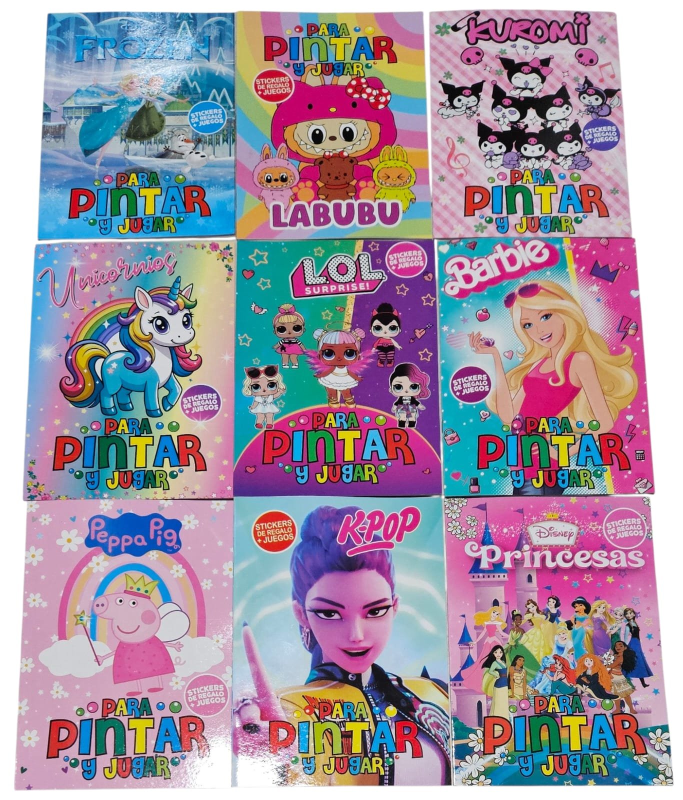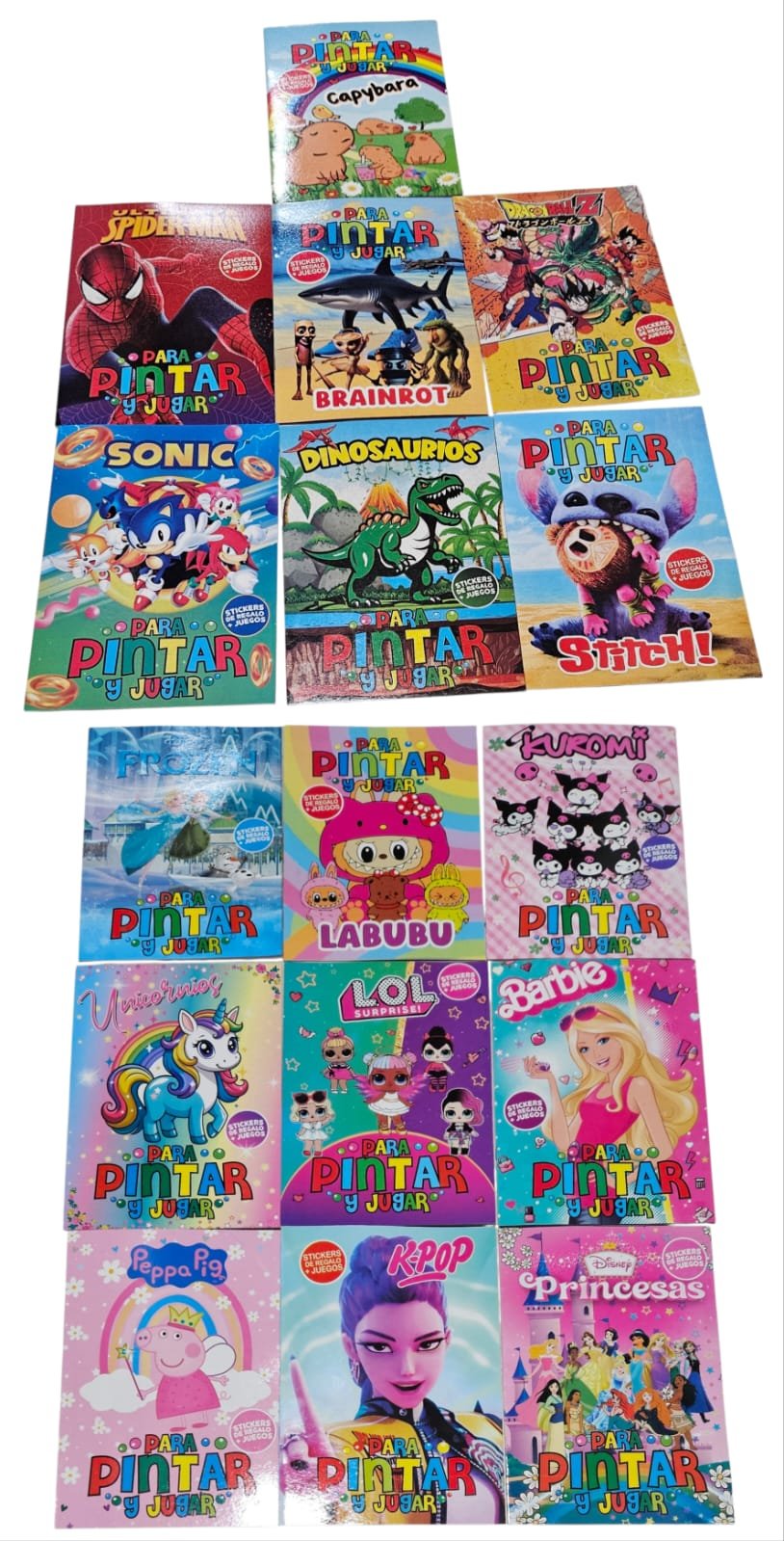 LIBRITOS PARA COLOREAR 16 PAGS Y STICKERS CON 16 TAPAS SURTIDAS (MULTIPLOS DE 16)