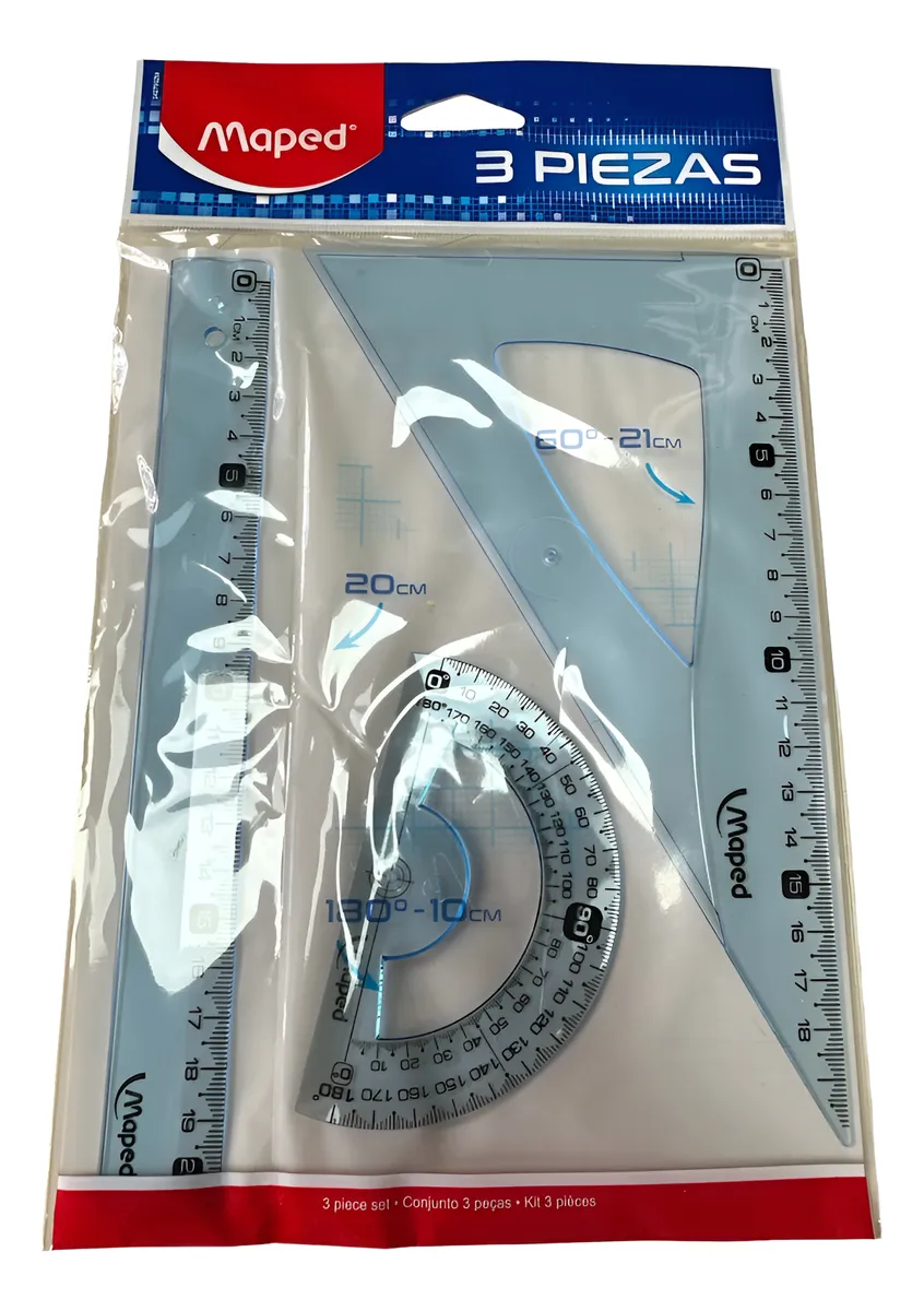 SET DE GEOMETRIA MAPED 3 PIEZAS 20CM BOLSA X1 PLASTICO